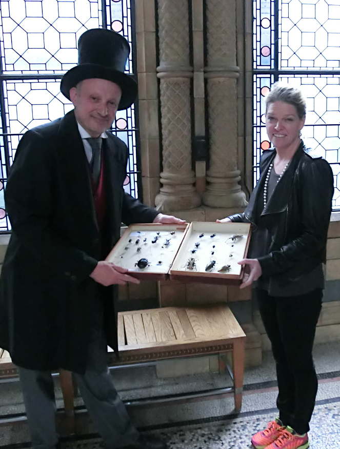 The image/picture is of a fellow pretending to be Mr Darwin with the real Jen, taken in the British Museum of Natural History a few months ago.