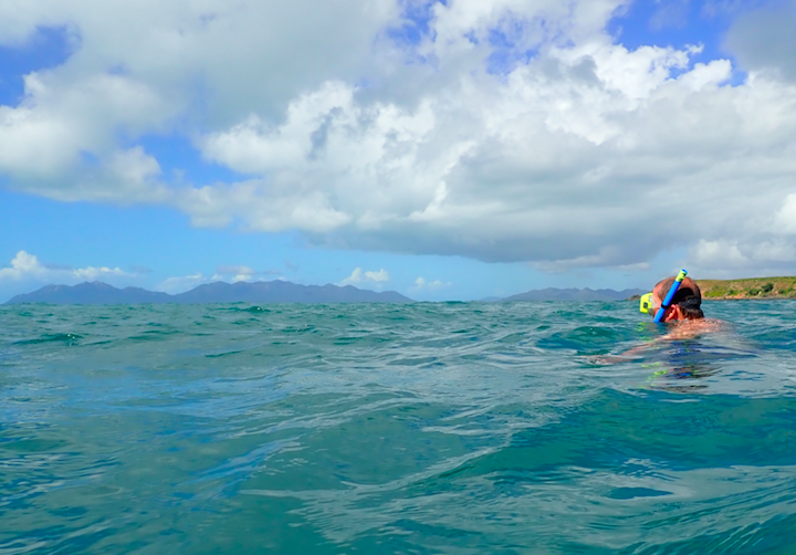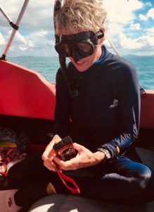 The first/feature photo is of me (Jennifer Marohasy) getting ready to jump in, with a view across to the north eastern edge of Middle Island, off Bowen, on 22 April 2019; photo credit John Barnes.