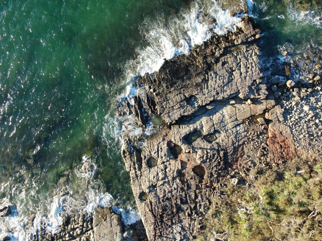 A photograph of the pot holes, on the very high tide today, 11th July 2019./caption]
