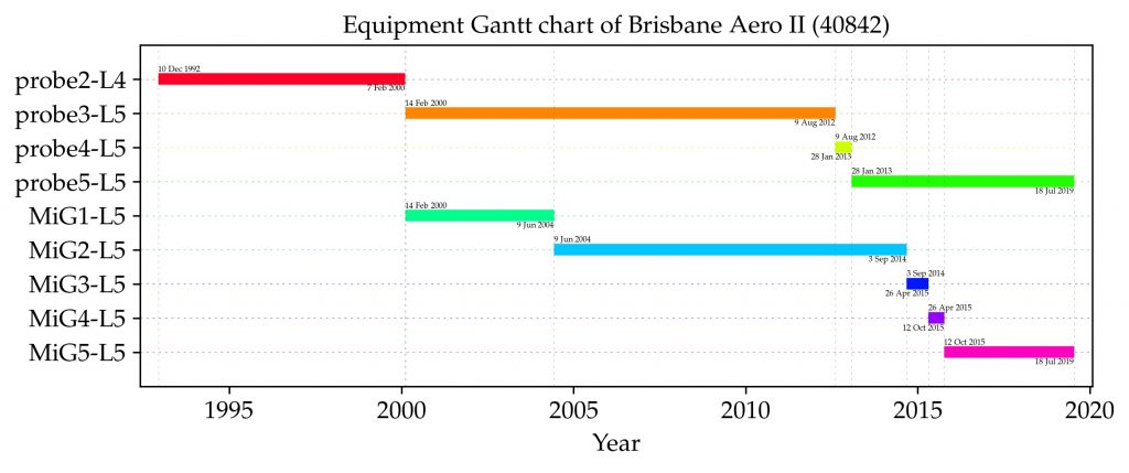 We know that there have been four different probes used at the Brisbane airport site, as shown in Table 1.