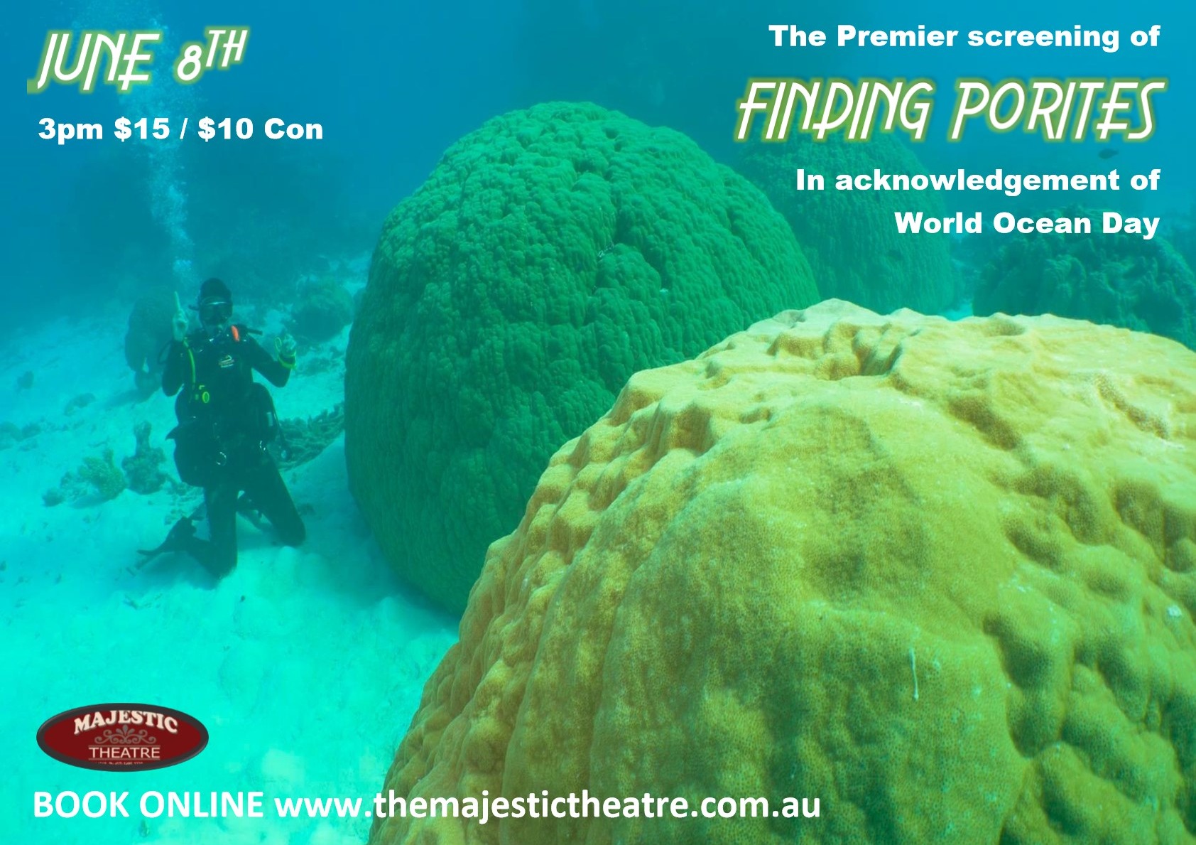 Our short film, Finding Porites, will premiere at the local Majestic Theatre on 8th June. And we now have a short 45-second trailer: