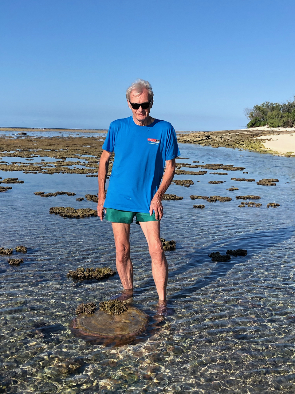 I visited Lady Elliot Island at the Great Barrier Reef earlier this year with my husband, John Abbot. Scuba diving, I was unable to find any coral bleaching. Walking along the seashore with John (Abbot, not Pandolfi) I could only find evidence of sea level fall, not sea level rise. Indeed, the image featured at the top of this blog post shows John looking at a Porites sp. microatoll whose growth is constrained by sea level. The coral colony is flat topped, and dead-on top. A thin veneer of live coral grows around it’s margin and down to the sand. The live coral would thus be invisible to the surveys by Terry Hughes from 150 metres up in an airplane. (That is another mad story written up in prestigious journals and repeated in the press. It is everywhere, the madness.)