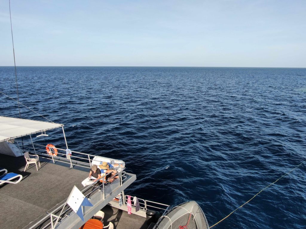 I’ve extracted the feature image (at the very top of this blog post) from some drone footage shot by Stuart Ireland flying behind Russell Island from our little boat Kiama, with Rob McCulloch and me.