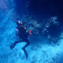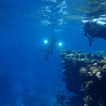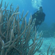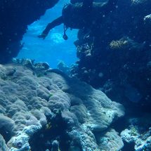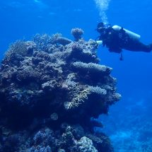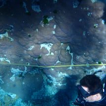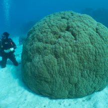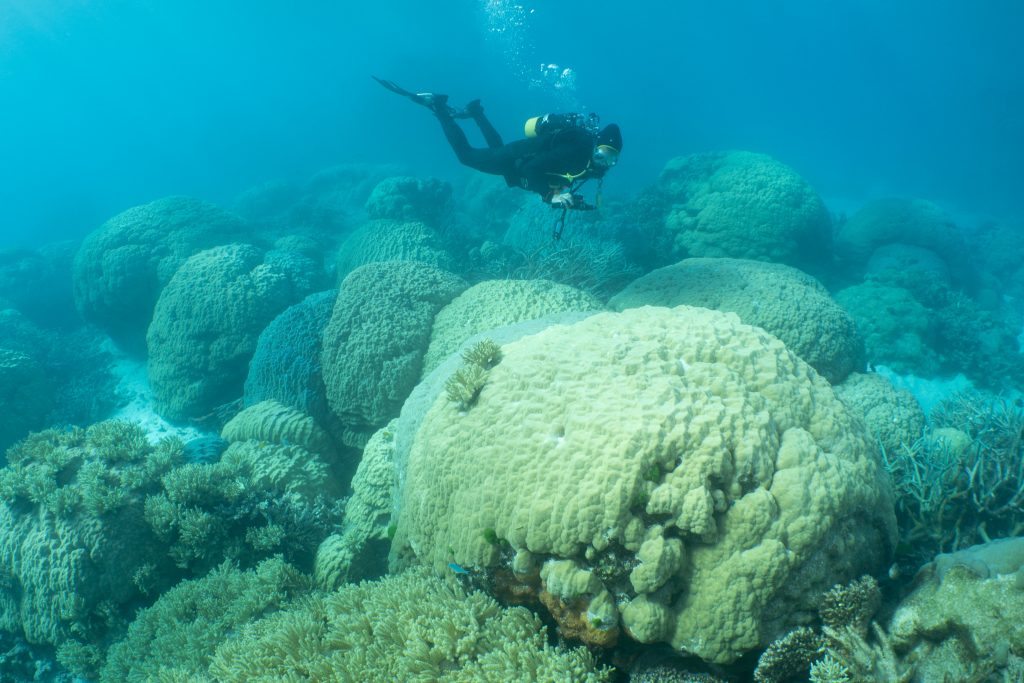 Shaun Frichette swimming over massive Porites on 1st December 2020.
