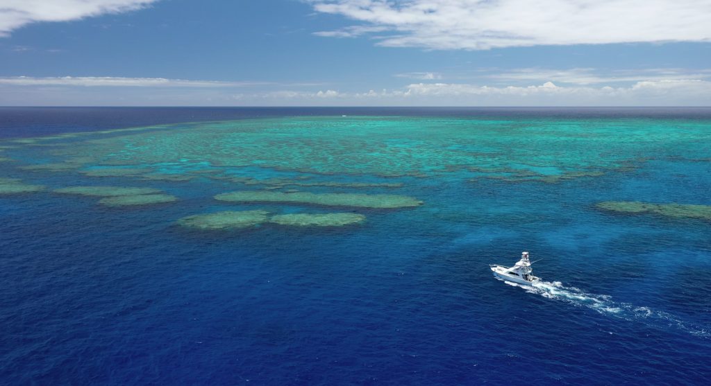 Myrmidon is an ancient and detached coral reef that juts out into the Pacific Ocean on the eastern edge of the Great Barrier Reef.
