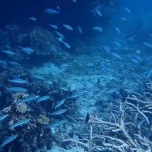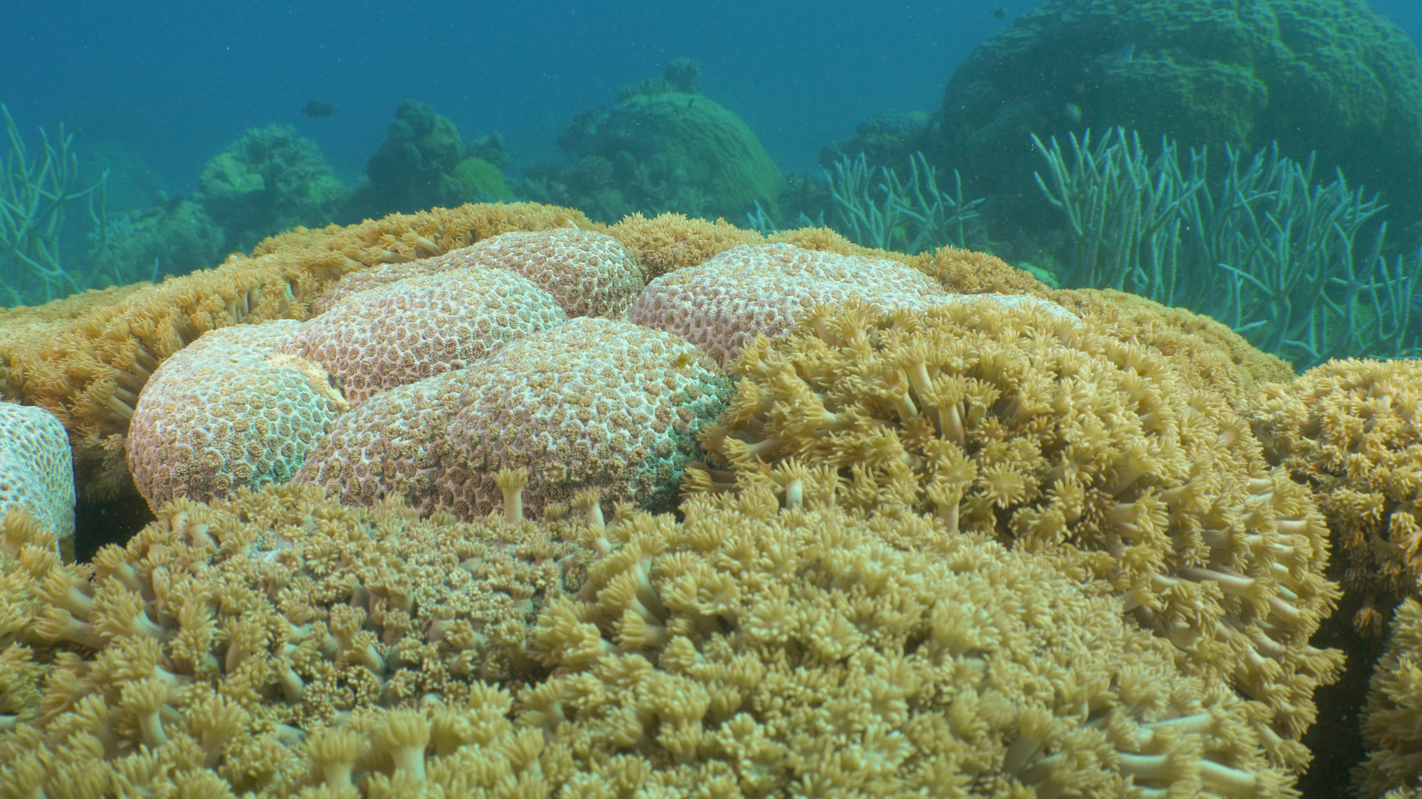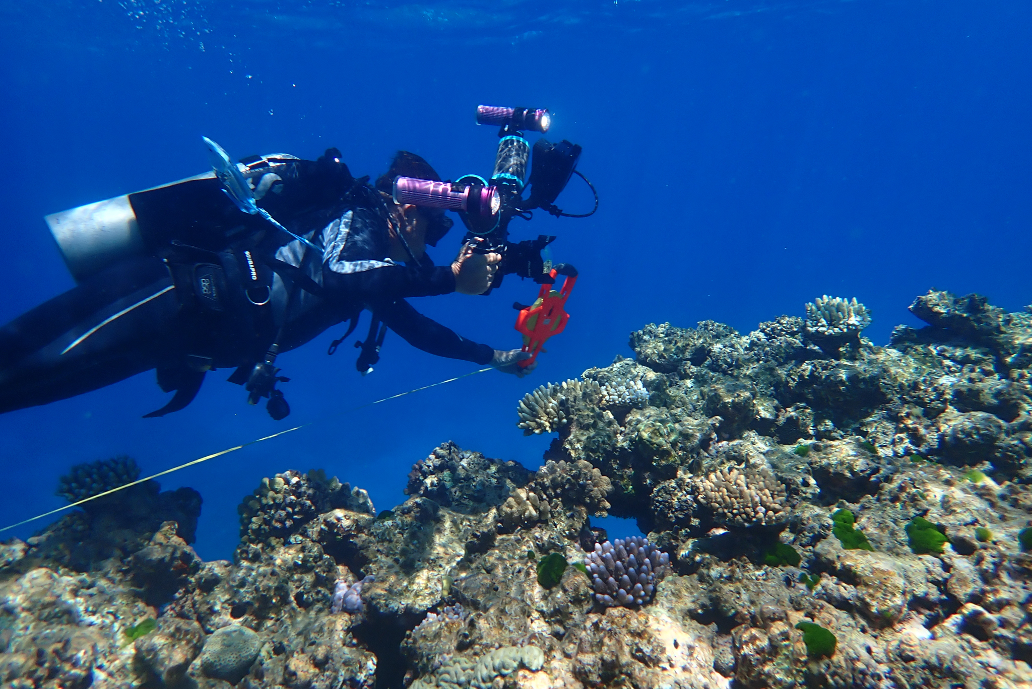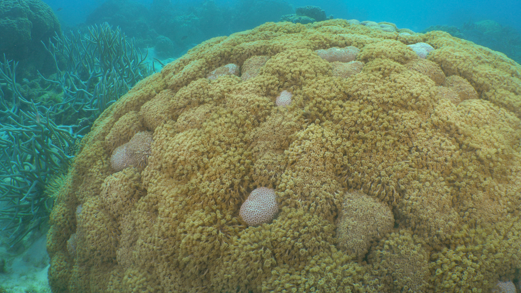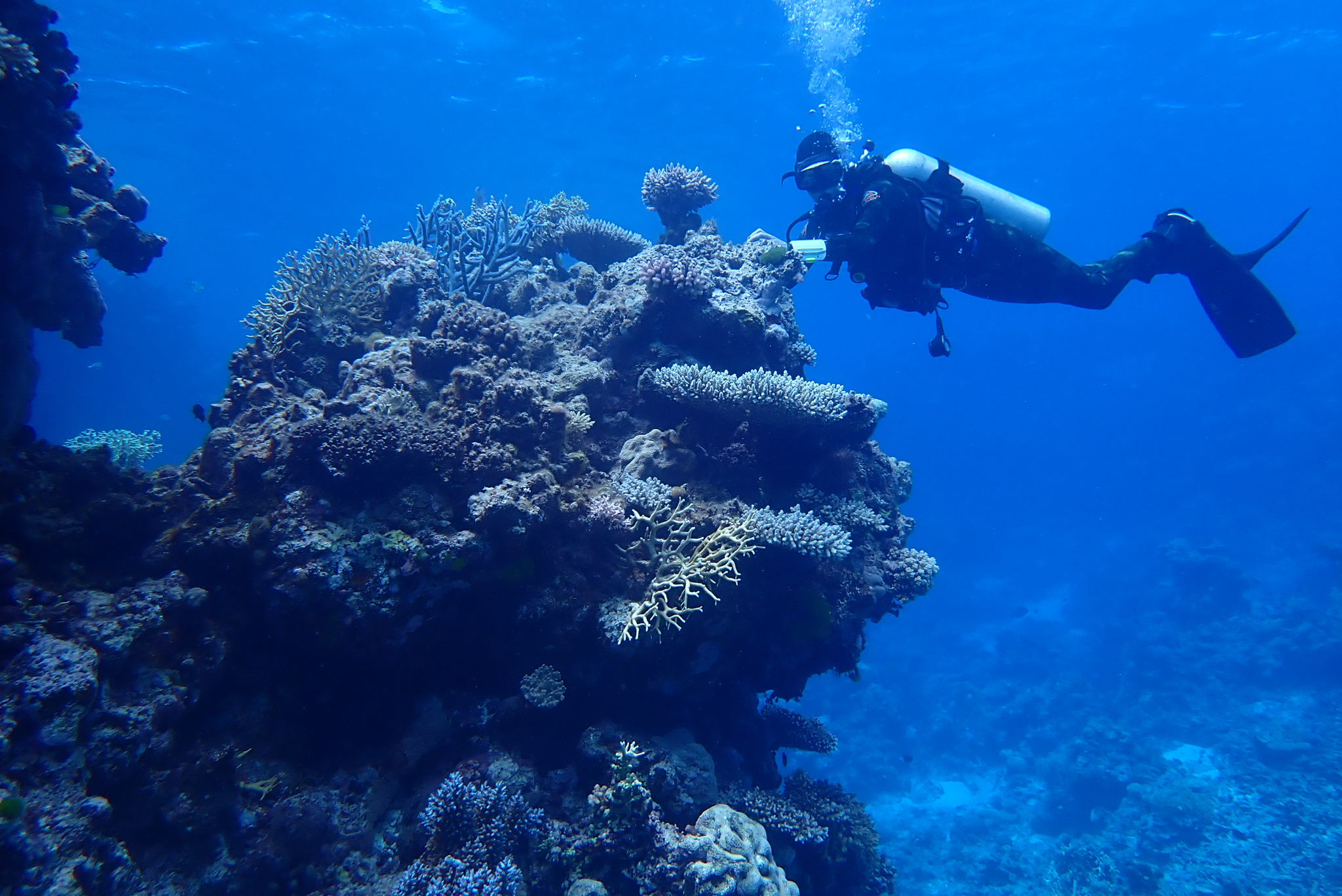 Shaun Frichette swimming over massive Porites on 1st December 2020.