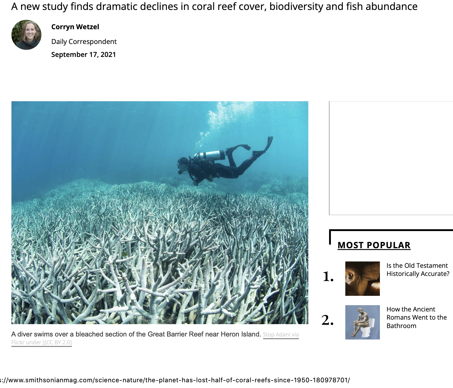 I am seeking feedback, including comment and corrections, on this draft blog post. I have previously sent an email to Richard Vevers (1 October 2021) and placed a request for more information at the Catlin Survey website (20 April 2021), without receiving any response from either. Irus Braverman was kind enough to reply to my email (30 September 2021) indicating that the photograph used in her book Coral Whisperers was provided to her by Richard Vevers.
