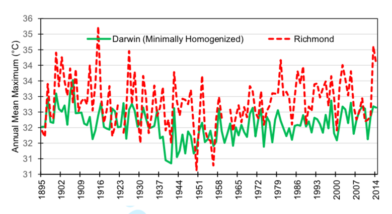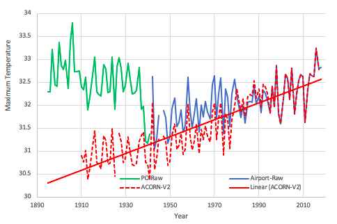 Chapter 16 of the book ‘Climate Change: The Facts 2020’ provides more detail on how the Australian Bureau of Meteorology takes a revisionist approach to Darwin’s history, click here: