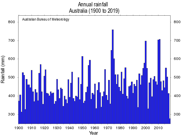 Managers at the Australian Bureau of Meteorology have for years misled the public on the state of the climate. It is not getting drier, and the extent to which some coastal locations may have warmed over the last hundreds years is unclear because of all the changes to the measurement methods. Also, the extent of the remodelling of the temperature record can now be explored through an interactive table, unique to this website, with maximum and minimum annual series for all 112 ACORN-SAT sites (versions 1 and 2) juxtaposed against the raw data.